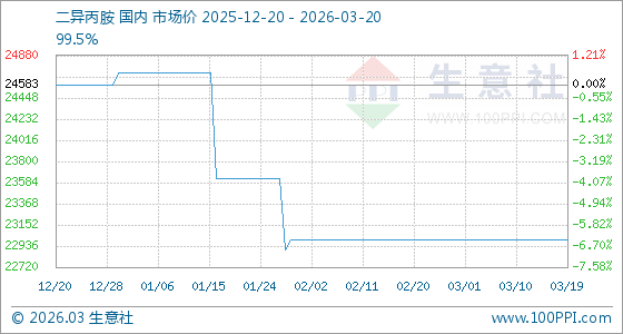 3月20日,生意社二异丙胺基准价为23000.00元/吨,与本月初持平。