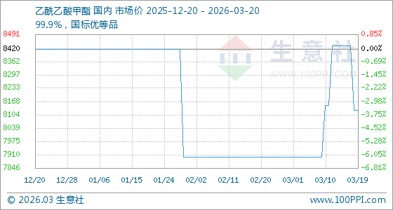 3月20日,生意社乙酰乙酸甲酯基准价为8125.00元/吨,与本月初(7900.00元/吨)相比,上涨了2.85%。