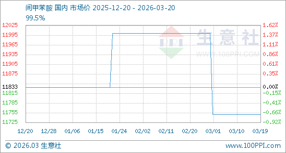 3月20日生意社间甲苯胺基准价为11750.00元/吨