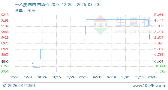 3月20日生意社一乙胺基准价为9000.00元/吨
