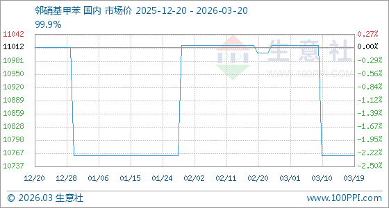 3月20日生意社邻硝基甲苯基准价为10762.50元/吨