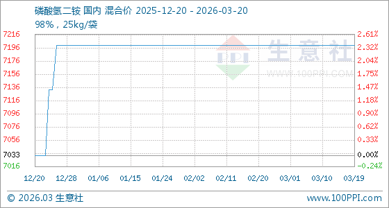 3月20日,生意社磷酸氢二铵基准价为7200.00元/吨,与本月初持平。