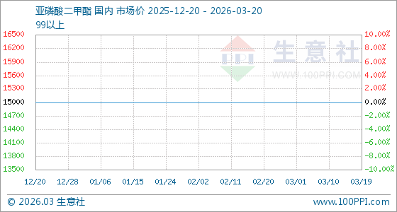 3月20日,生意社亚磷酸二甲酯基准价为15000.00元/吨,与本月初持平。