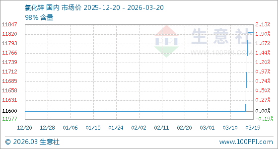 3月20日生意社氯化锌基准价为11825.00元/吨