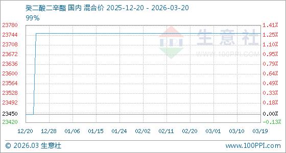 3月20日生意社癸二酸二辛酯基准价为23750.00元/吨