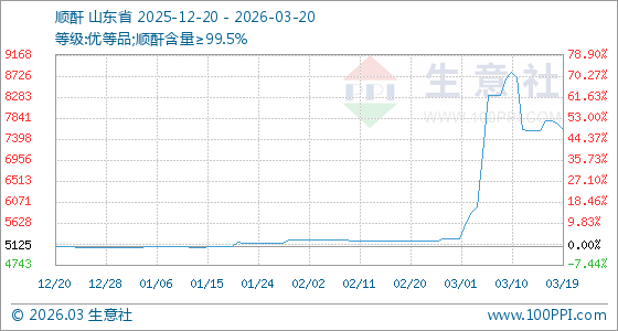 3月20日生意社顺酐基准价为7600.00元/吨