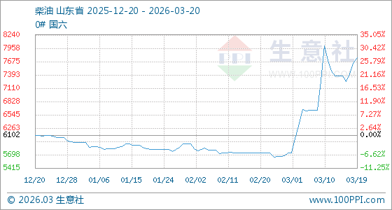 3月20日生意社柴油基准价为7760.57元/吨