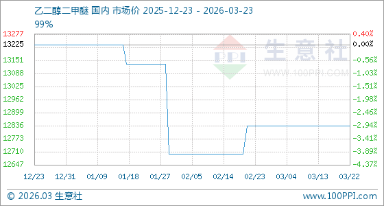 3月23日生意社乙二醇二甲醚基准价为12833.33元/吨