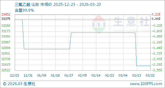 3月23日生意社三氟乙酸基准价为32600.00元/吨