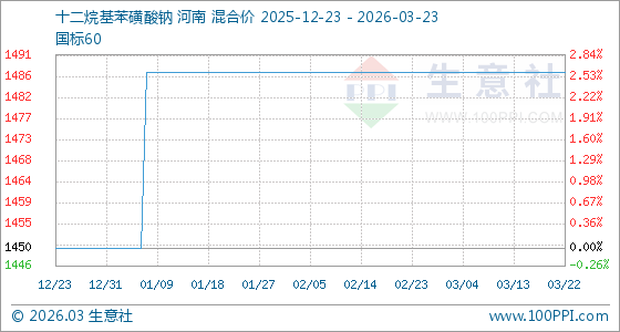 3月23日生意社十二烷基苯磺酸钠基准价为1487.50元/吨