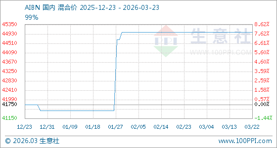 3月23日生意社AIBN基准价为45000.00元/吨
