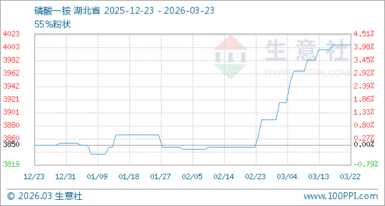 3月23日生意社磷酸一铵基准价为4006.67元/吨