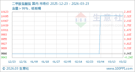 3月23日生意社二甲胺盐酸盐基准价为10100.00元/吨