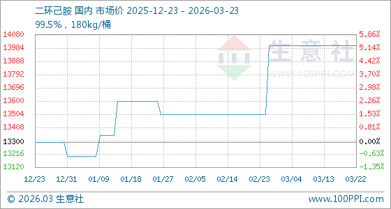 3月23日生意社二环己胺基准价为14000.00元/吨