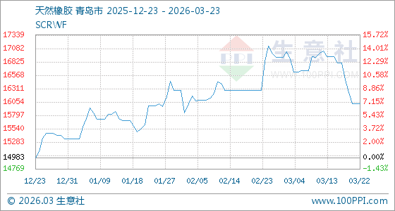 3月23日生意社天然橡胶基准价为16025.00元/吨