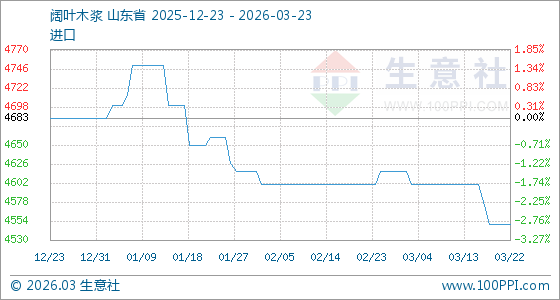 3月23日生意社阔叶木浆基准价为4550.00元/吨