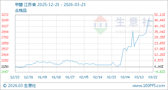 3月23日生意社甲醇基准价为3140.00元/吨