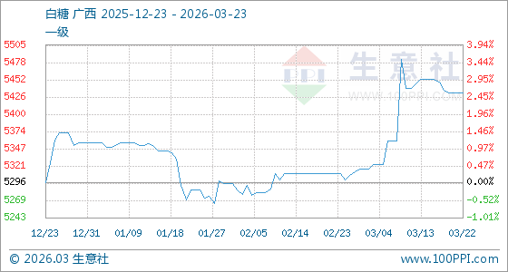 3月23日生意社白糖基准价为5433.33元/吨