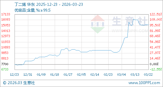 3月23日生意社丁二烯基准价为15200.00元/吨