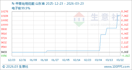 3月23日生意社N-甲基吡咯烷酮基准价为10200.00元/吨