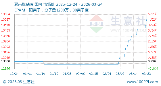 3月24日生意社聚丙烯酰胺基准价为13600.00元/吨