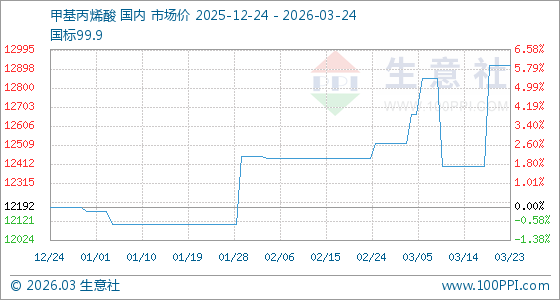 3月24日生意社甲基丙烯酸基准价为12914.29元/吨