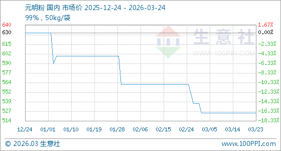 3月24日,生意社元明粉基准价为525.00元/吨,与本月初(537.50元/吨)相比,下降了2.33%。