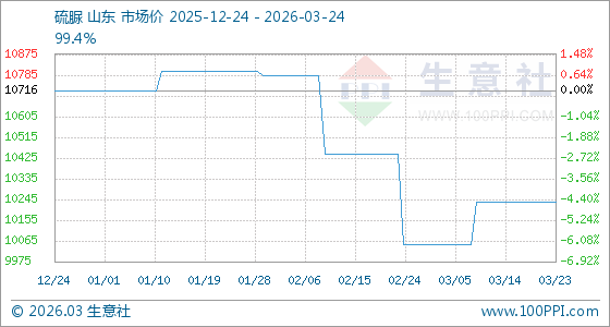 3月24日生意社硫脲基准价为10233.33元/吨