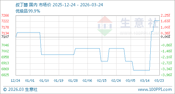 3月24日生意社叔丁醇基准价为7230.00元/吨