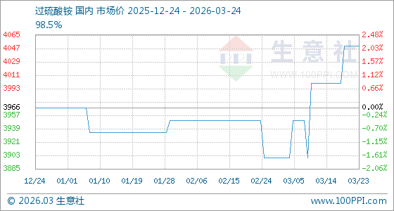 3月24日生意社过硫酸铵基准价为4050.00元/吨