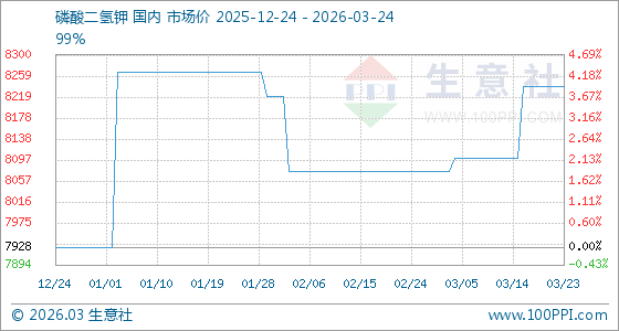 3月24日生意社磷酸二氢钾基准价为8240.00元/吨