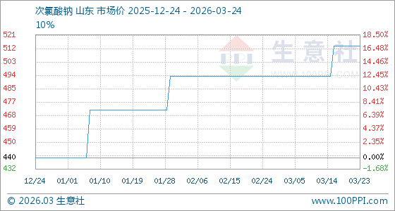 3月24日生意社次氯酸钠基准价为514.00元/吨