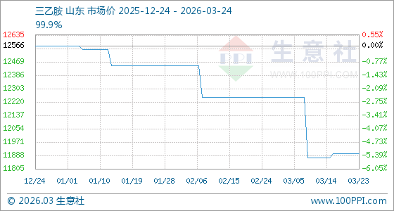3月24日生意社三乙胺基准价为11900.00元/吨