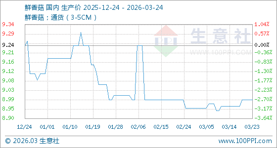 3月24日生意社鲜香菇基准价为8.99元/公斤