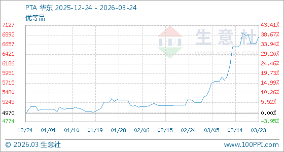 3月24日,生意社PTA基准价为6855.64元/吨,与本月初(5237.90元/吨)相比,上涨了30.89%。