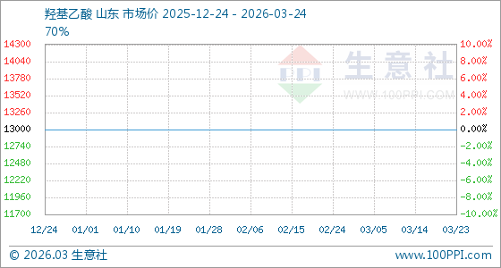 3月24日,生意社羟基乙酸基准价为13000.00元/吨,与本月初持平。