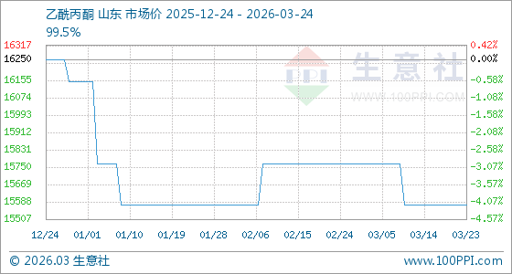 3月24日生意社乙酰丙酮基准价为15575.00元/吨