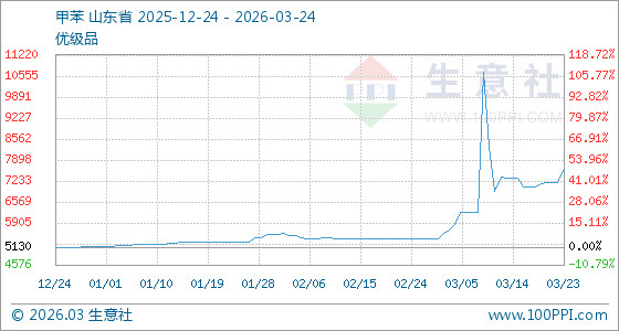 3月24日,生意社甲苯基准价为7617.67元/吨,与本月初(5400.00元/吨)相比,上涨了41.07%。