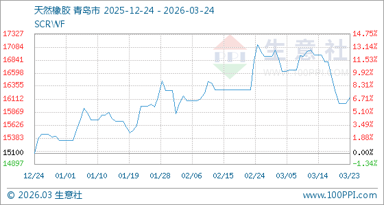3月24日生意社天然橡胶基准价为16141.67元/吨