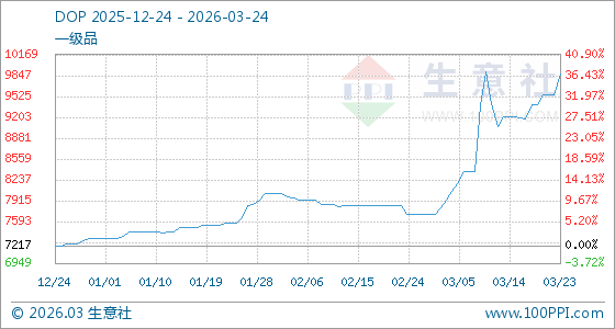 3月24日生意社DOP基准价为9875.83元/吨