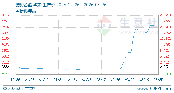 3月26日生意社醋酸乙酯基准价为6733.33元/吨