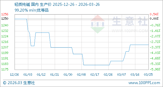 3月26日生意社轻质纯碱基准价为1212.00元/吨