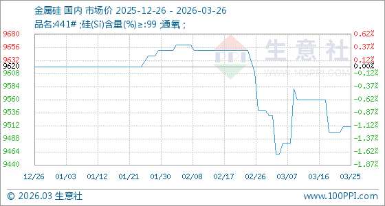 3月26日生意社金属硅基准价为9510.00元/吨