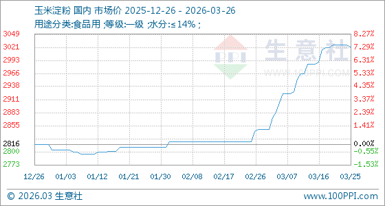 3月26日生意社玉米淀粉基准价为3022.00元/吨