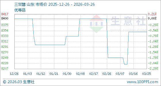 3月26日生意社三甘醇基准价为8350.00元/吨