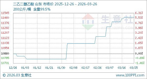 3月26日生意社二乙二醇乙醚基准价为11475.00元/吨