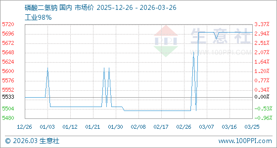 3月26日生意社磷酸二氢钠基准价为5700.00元/吨
