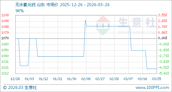 3月26日生意社无水氯化钙基准价为1020.00元/吨