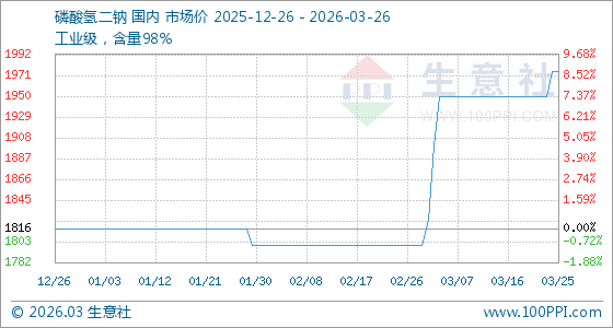 3月26日生意社磷酸氢二钠基准价为1975.00元/吨