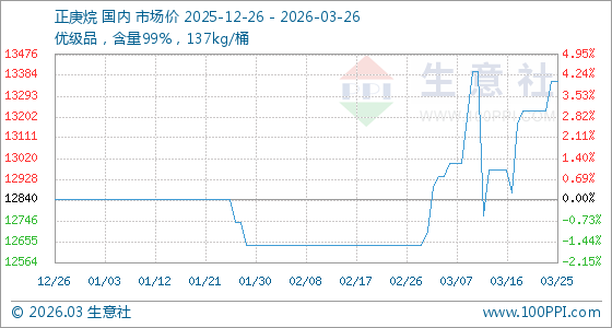 3月26日生意社正庚烷基准价为13360.00元/吨
